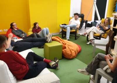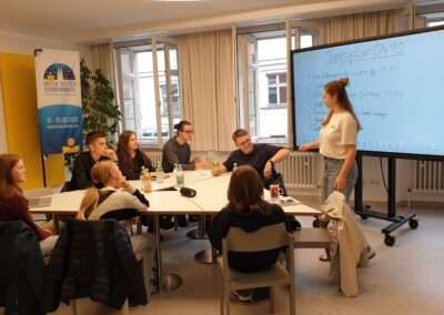 Doch lange blieben wir nicht bei Kennenlernspielen – bald wurde es inhaltlich: In einem längeren Gespräch mit unserer Präsidentin tauschten wir uns über ihre Vision für unsere Arbeit aus und klärten offene Fragen zu verschiedenen Themen.