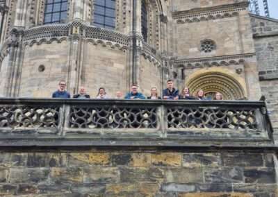 Nach einem kurzen Mittagssnack führte uns Vincent Heitzer an die verschiedenen Orte des kommenden Mädchenchorfestivals. Wir begannen auf dem Maxplatz, wo voraussichtlich die Eröffnungsfeier stattfinden wird. Weiter ging es in Richtung Rathaus – mit einem kurzen Abstecher zur Kirche St. Martin, die neben dem Dom eine wichtige Rolle im Festivalprogramm spielen soll. Vom Rathaus aus führte uns der Weg schließlich hinauf auf den Domberg, wo wir auch den Dom kurz besichtigten. Durch diese Führung konnten wir uns ein gutes Bild davon machen, was alles möglich ist – das hat uns sehr geholfen.
